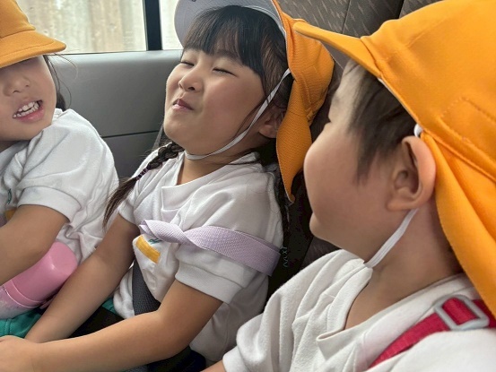 行きのバスはワクワク、そしてちょっと緊張気味の子どもたちでした。
