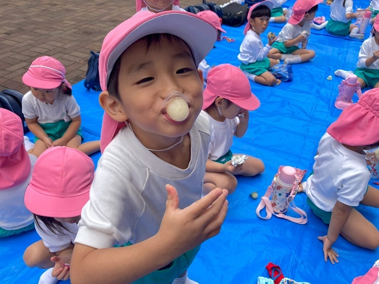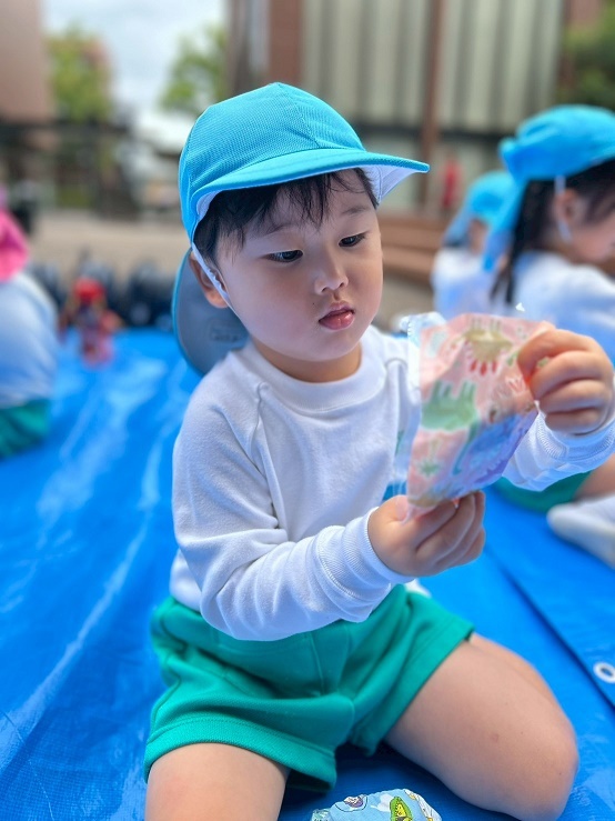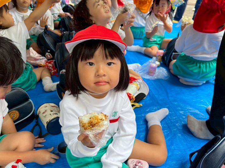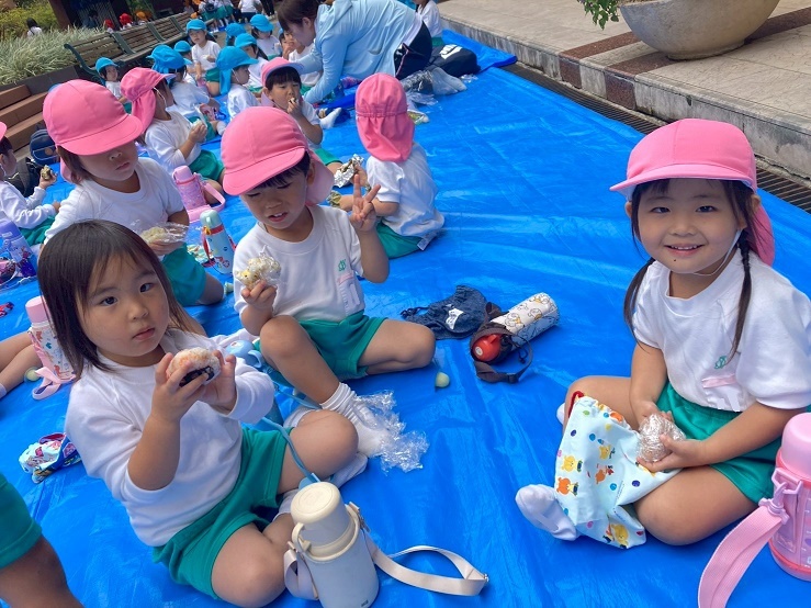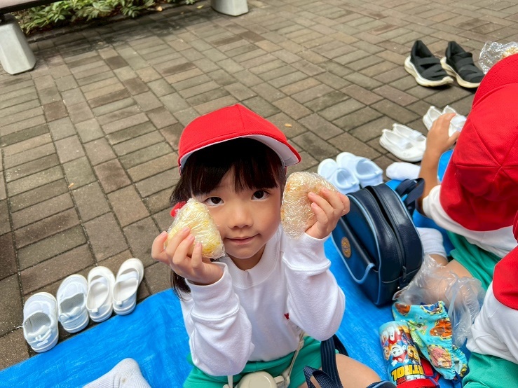 ラップが剥がれなかったり袋をうまく開けられなかったりと苦戦しながらも、初めてのおにぎり遠足を楽しむことができました。