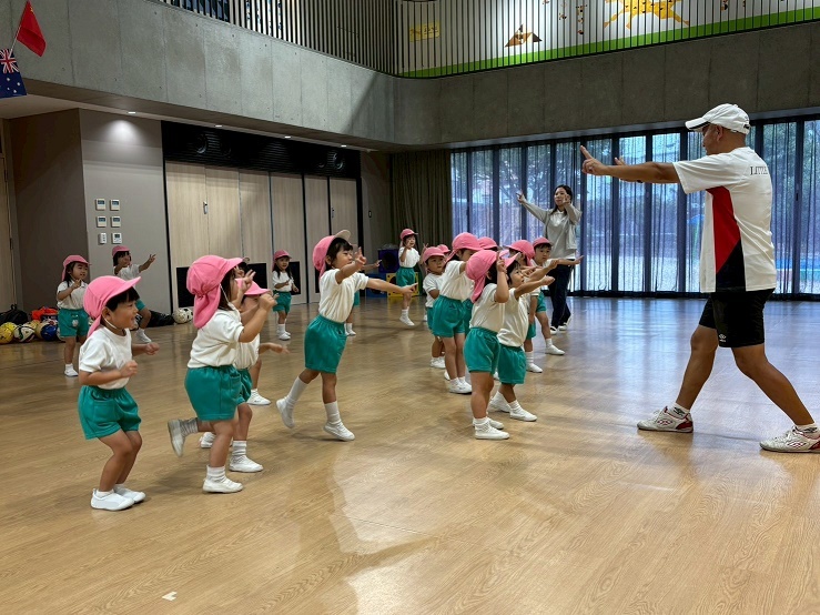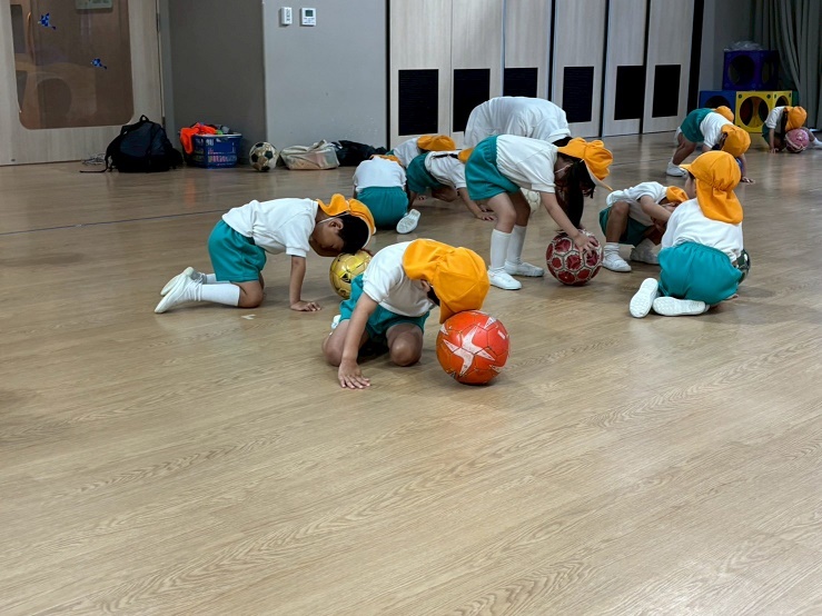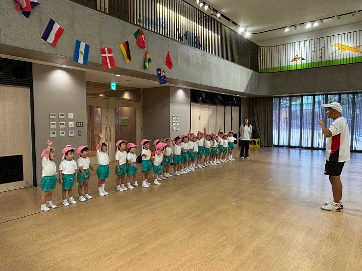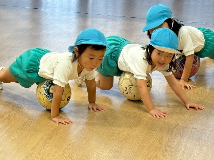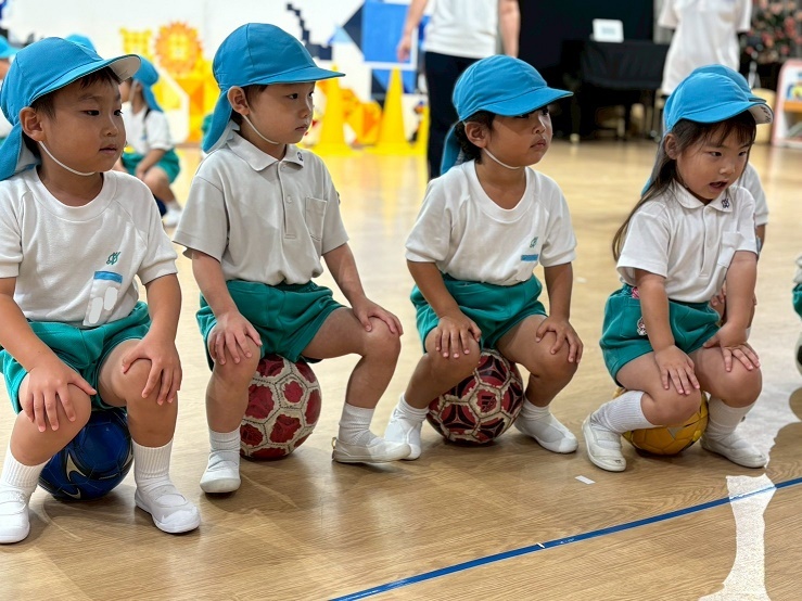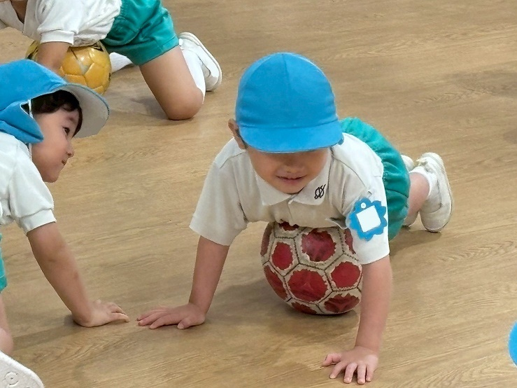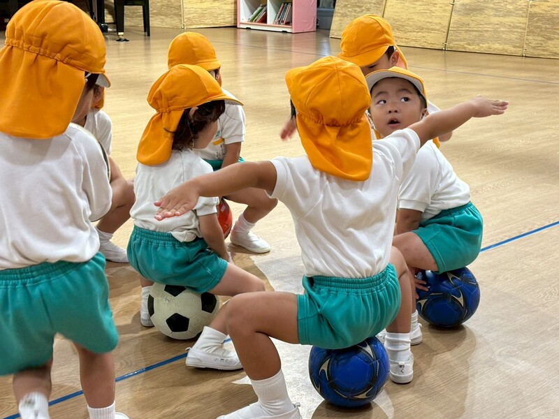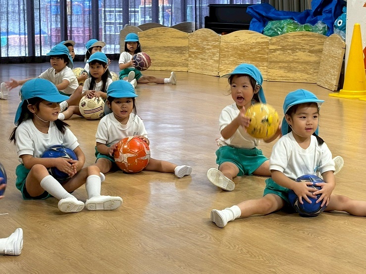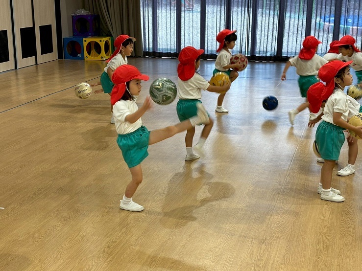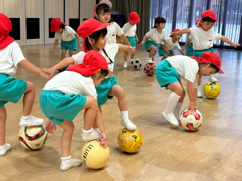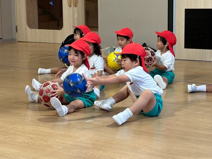 コーチのとっても楽しいサッカー教室に、年少組の子どもたちは声をあげて笑いながら楽しんでいましたよ!