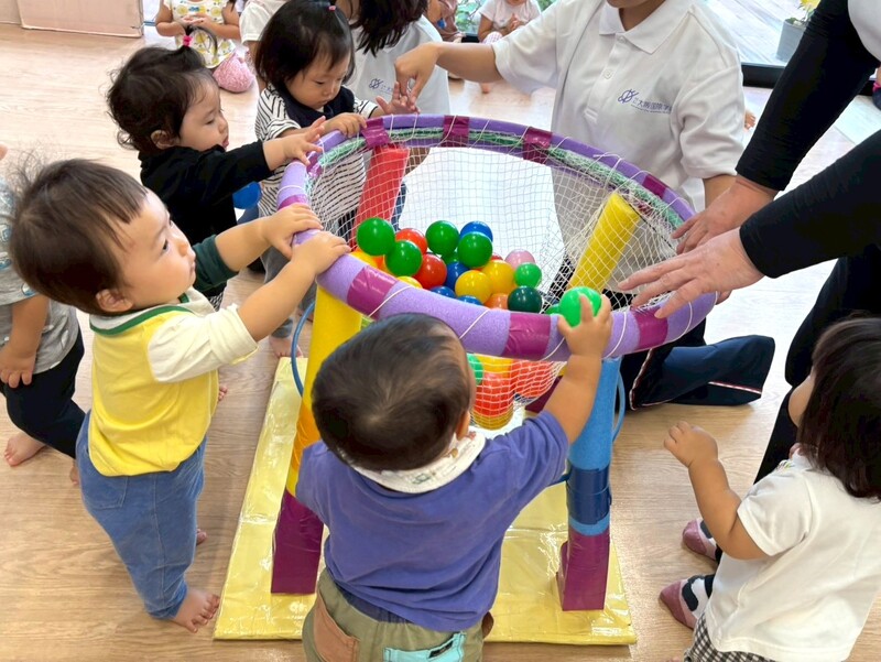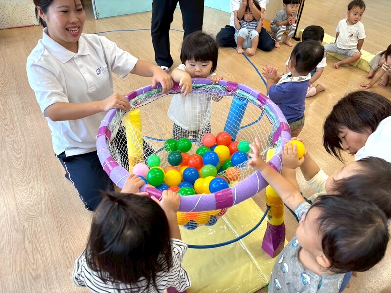 年少組は、憧れのパラバルーンや玉入れに挑戦しました。
