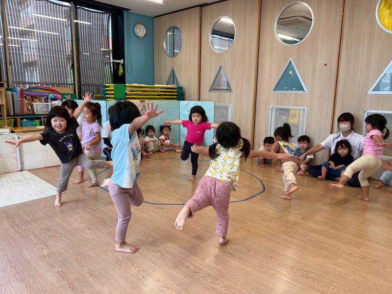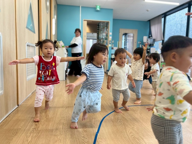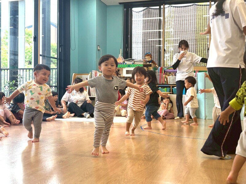 運動会に向けて一生懸命頑張る毎日ですが、お部屋でゆったりと遊ぶ時間を作ったりお散歩でのんびり過ごしたりと、メリハリをつけて楽しんでいます。