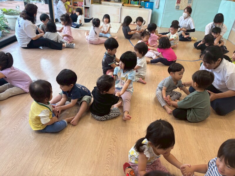 そこにたまたま通りかかった年少組が、なんか楽しそう♡と見学に。