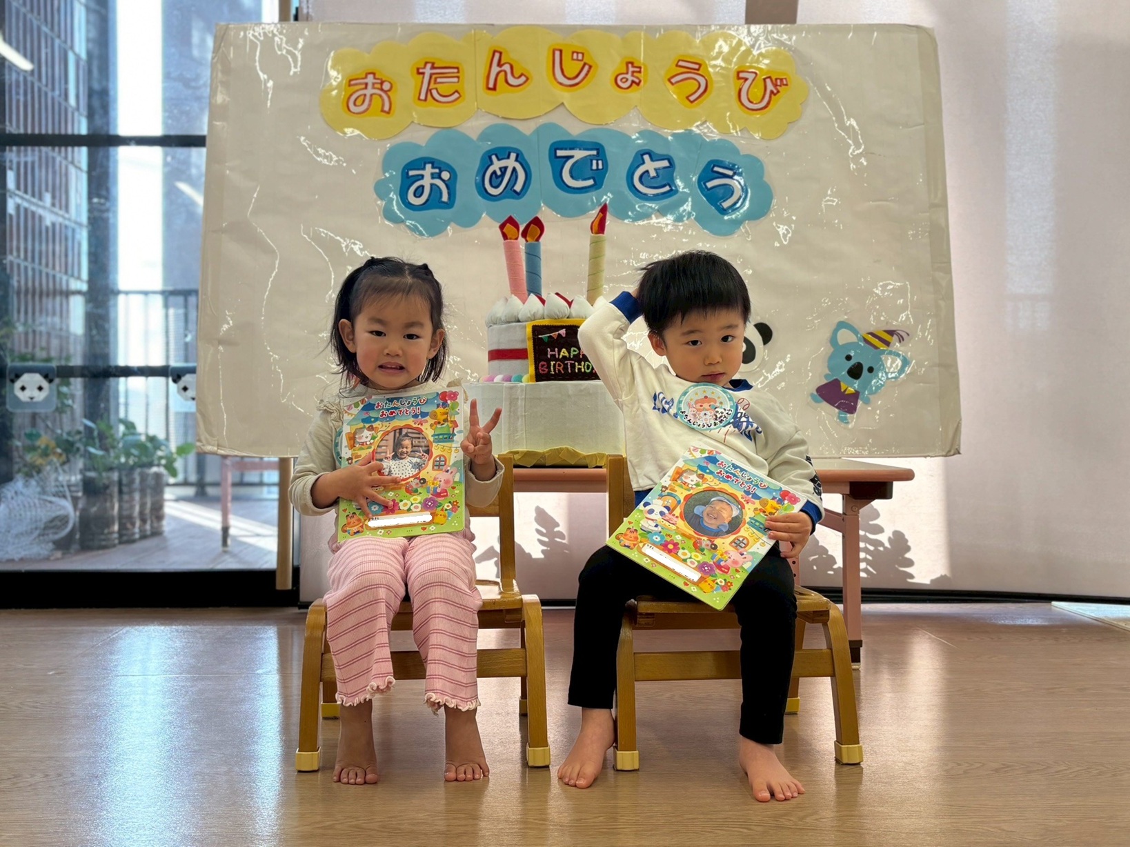 先生やお友だちにお祝いしてもらってにこにこ顔な子どもたちです♪