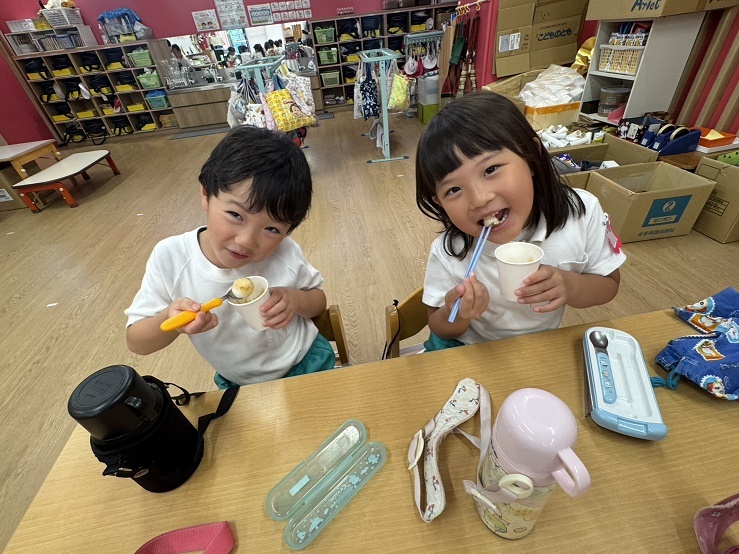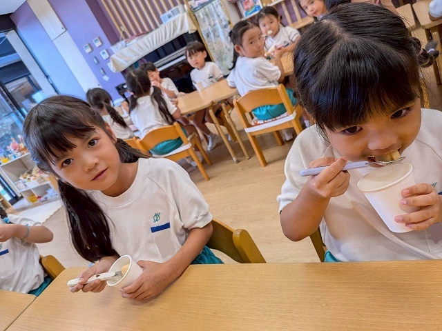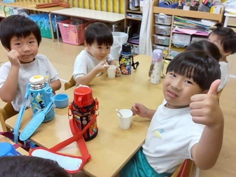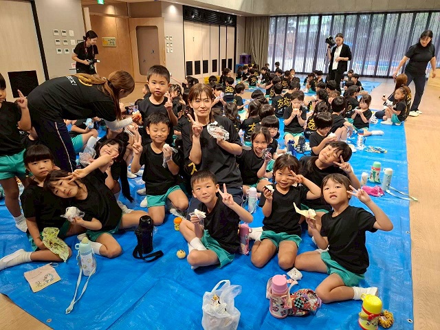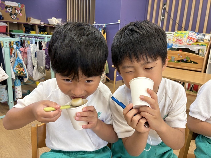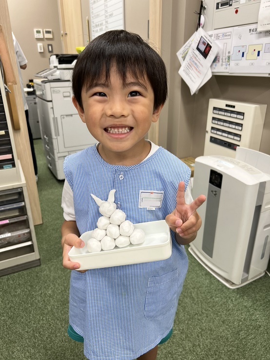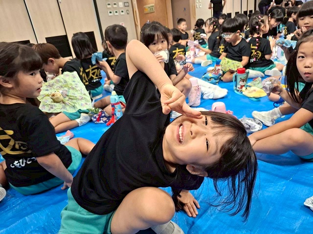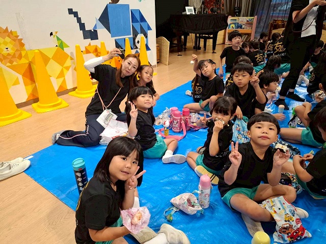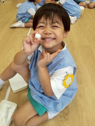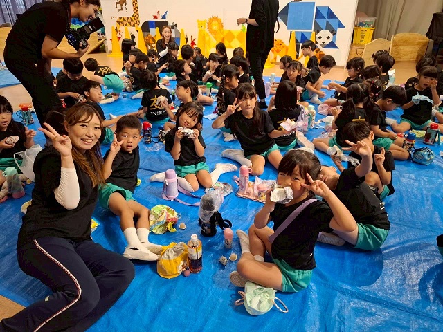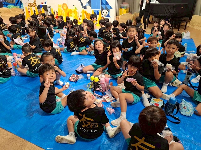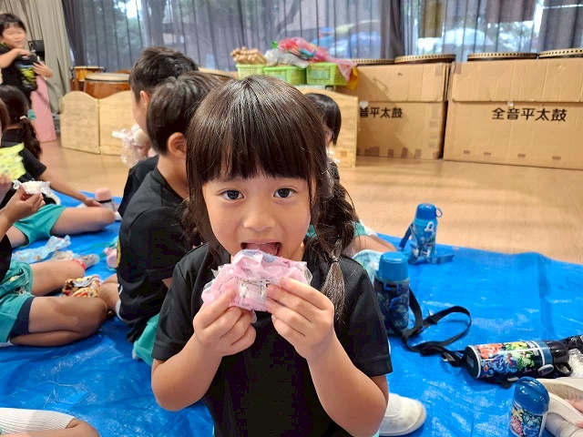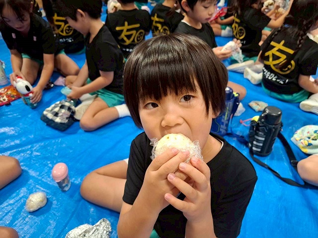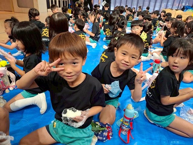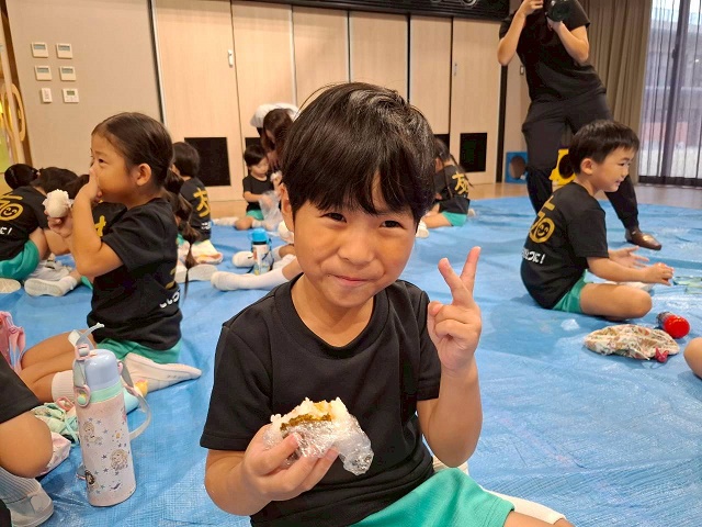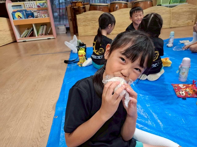幼稚園に戻ったらホールに集まり、楽しい楽しいおにぎりタイム🍙