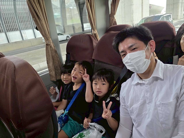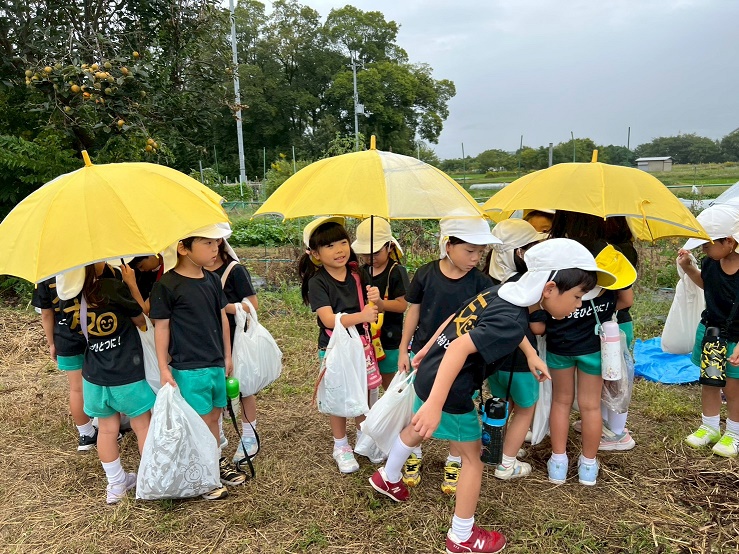 不安定なお天気の中となりましたが、行きのバスの中で「雨がやみますように!」「大きいおいもが掘れますように!」とお祈りしながら向かいました。