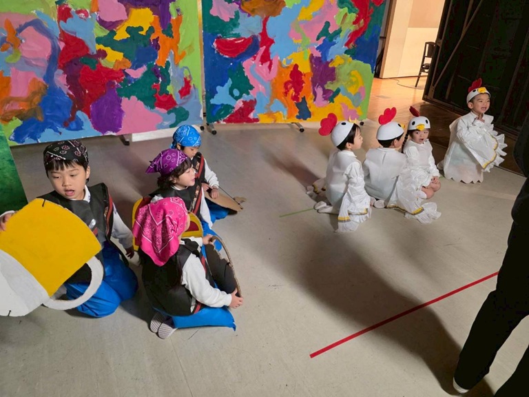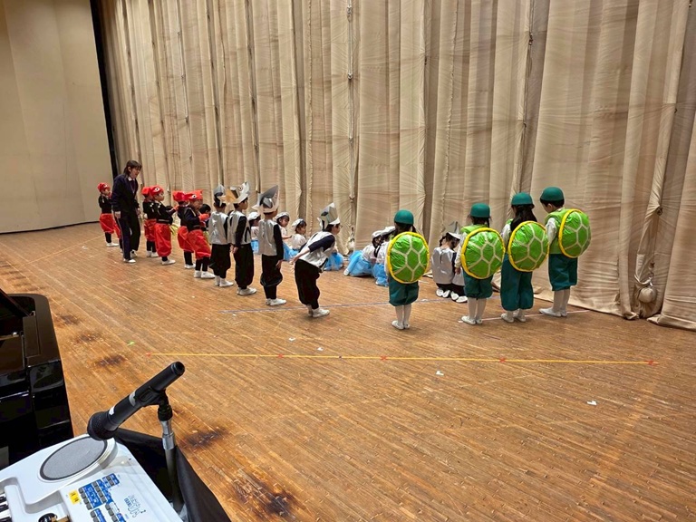 舞台裏では緊張した様子の子どもたちでしたが、舞台に出るとみんながしっかりと練習の成果を出して、自信満々に演じることができていました。